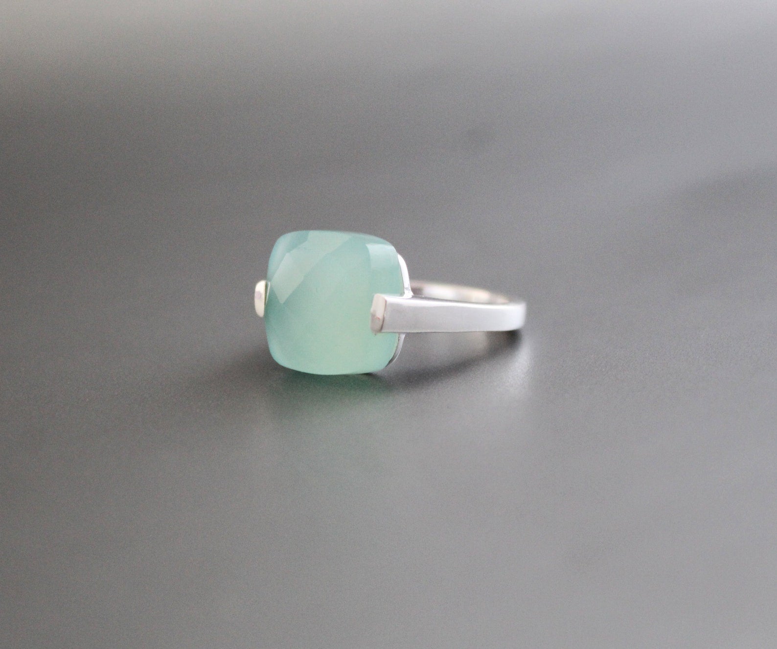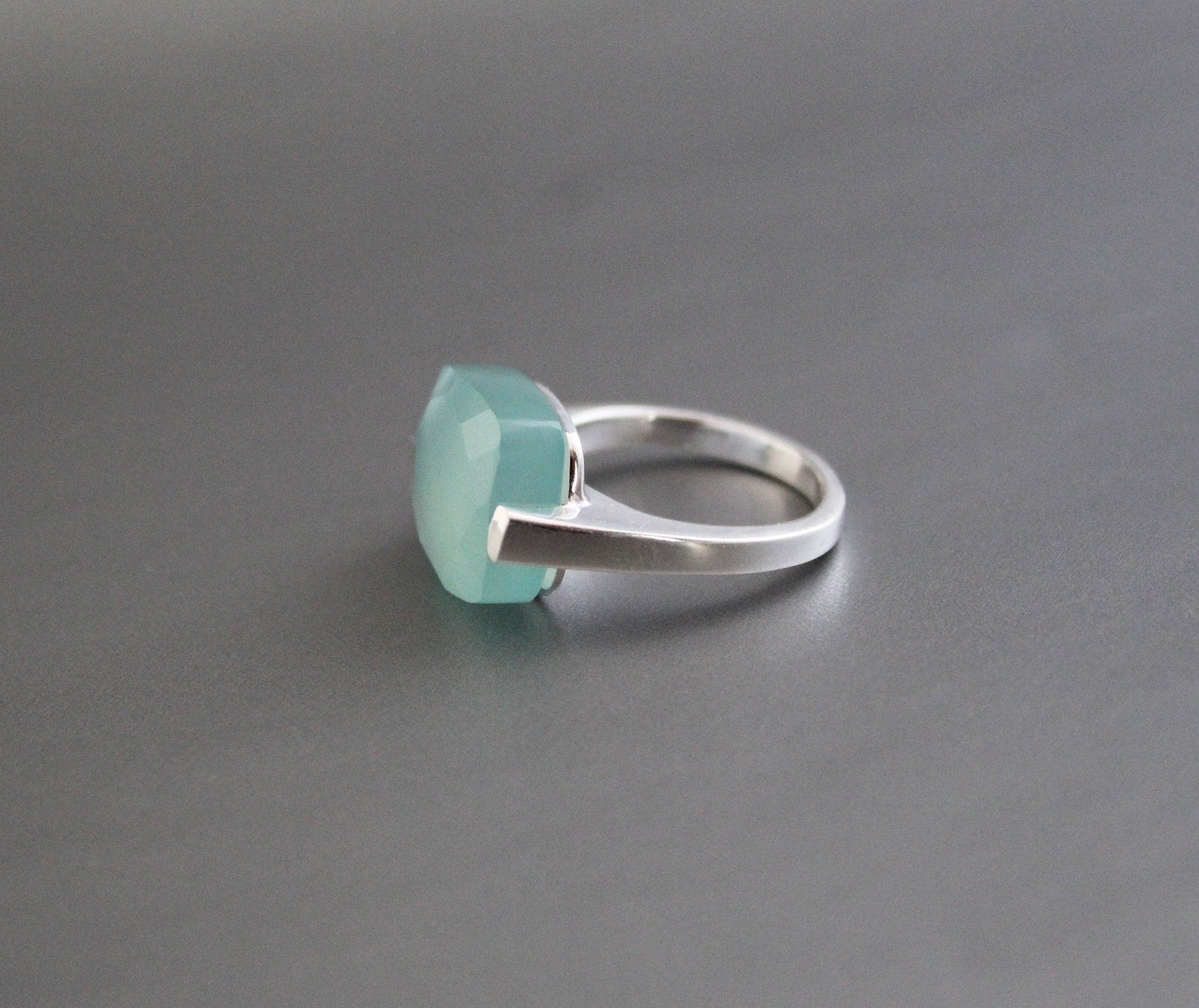 Aqua Chalcedony Ring - Handmade Gemstone Ring - March Birthstone - Blue Gemstone Stone - 925 Sterling Silver - Boho Ring - Gift For Her