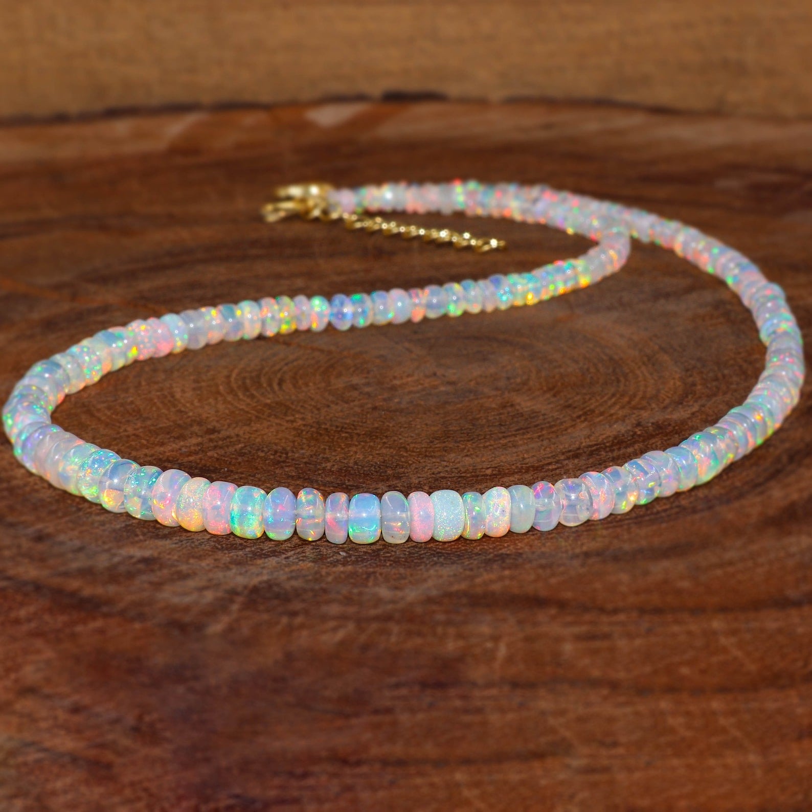 Multifire Natural Ethiopian Opal Beaded Necklace, Genuine Opal Fire Beads Necklace for Women, AAA Opal Gemstone, October Birthstone Jewelry,