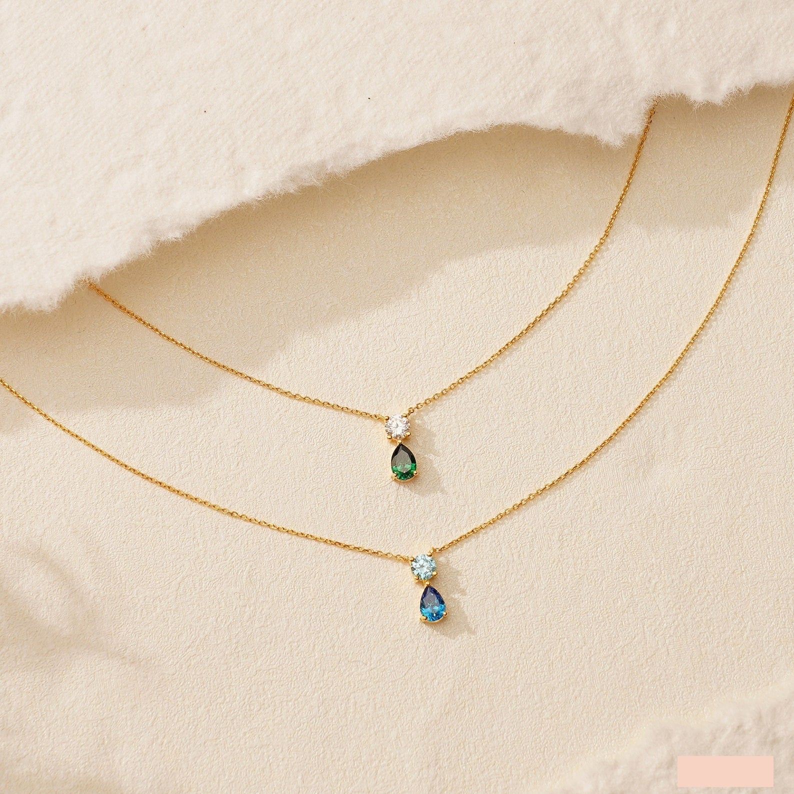 Two Birthstone Pendant Necklace, Personalized Birthstone Necklace, Meaningful Gifts for Mom, Personalized Birthstone Jewelry, Gift for Her